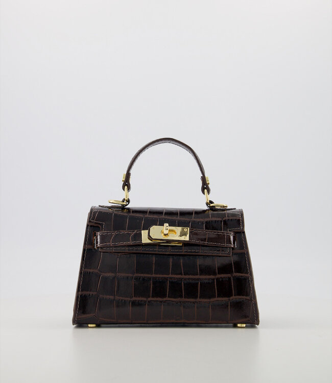 De Bag Grace Croco Dark Brown is een stijlvolle en tijdloze tas, gemaakt van echt leer.