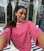 - Model is 1,78 en draagt normaal maat S. - T-shirt heeft een drie kwart mouw. - T-shirt is te dragen tot een L.