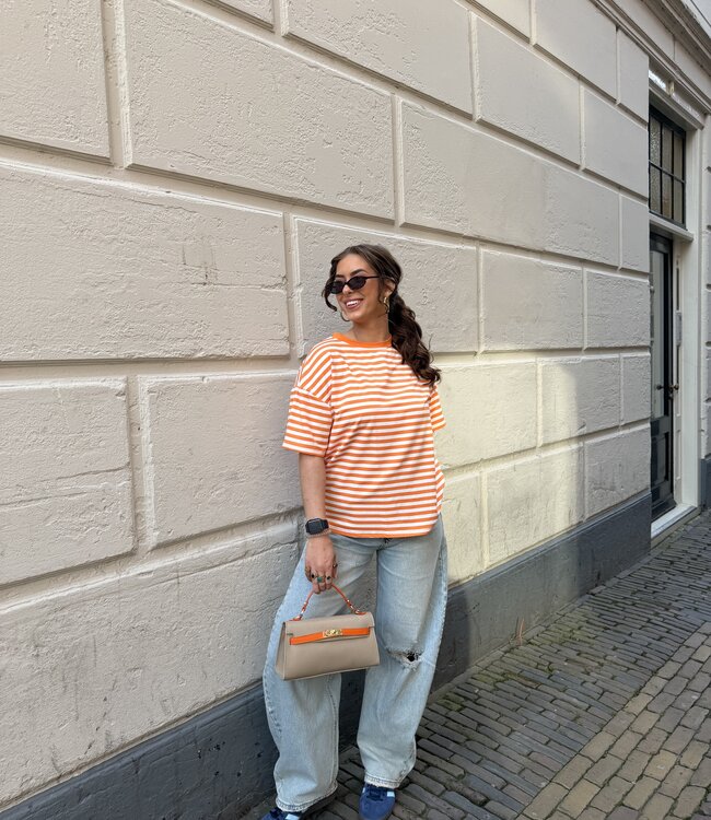 - Model is 1,65 en draagt normaal maat S. - T- Shirt is te dragen tot een maat L.