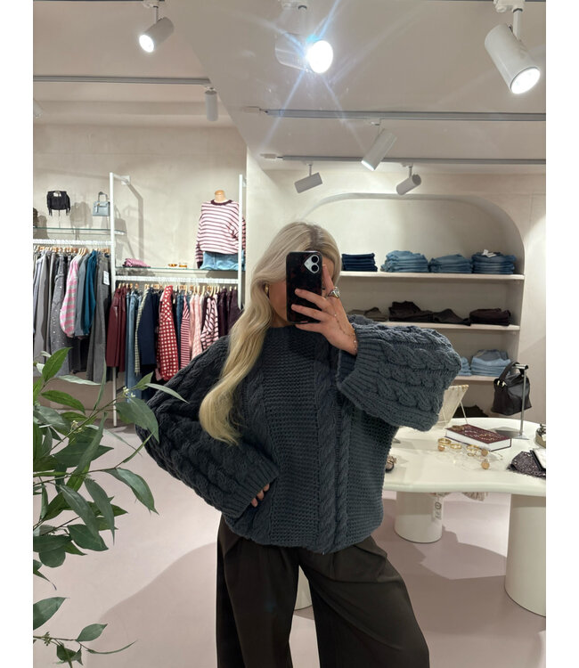 The Big Kabel Knit Dark Grey is de perfecte oversized trui voor een cozy en stijlvolle look. Deze trui heeft een prachtige kabelstructuur.