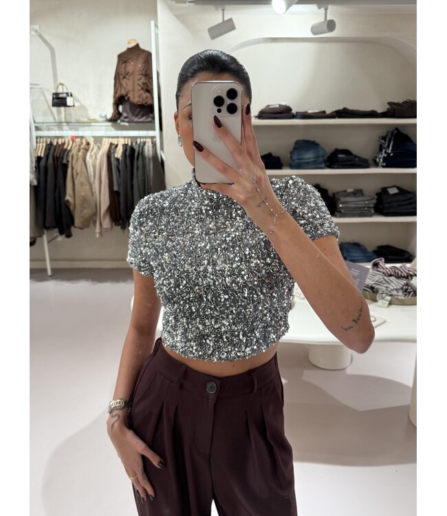 - Model is 1,78 en draagt maat M. - De top valt cropped en bevat een beetje stretch.