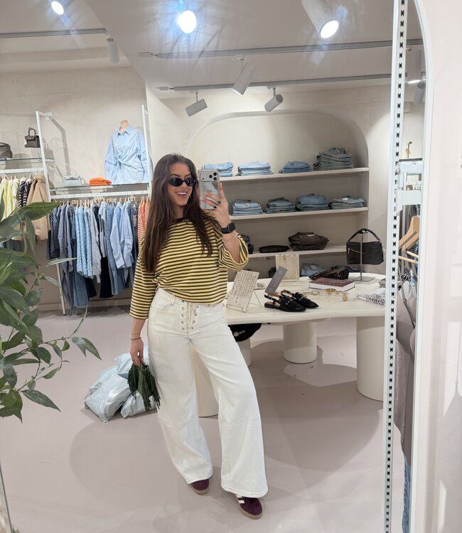 - Model is 1,65 en draagt maat S. - Jeans bevat stretch en valt high waist.